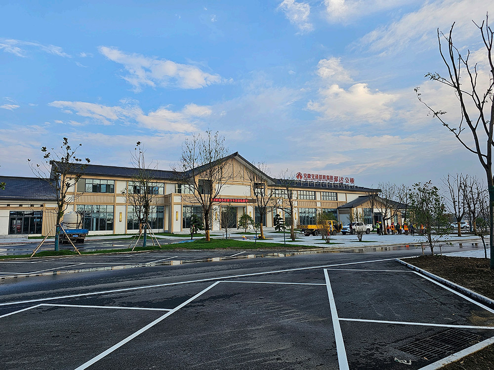 新建3對(duì)服務(wù)區(qū),1處收費(fèi)站,總建筑面積為1.4萬平方米, 于2023年9月12日竣工交付。