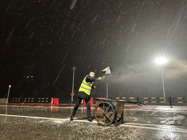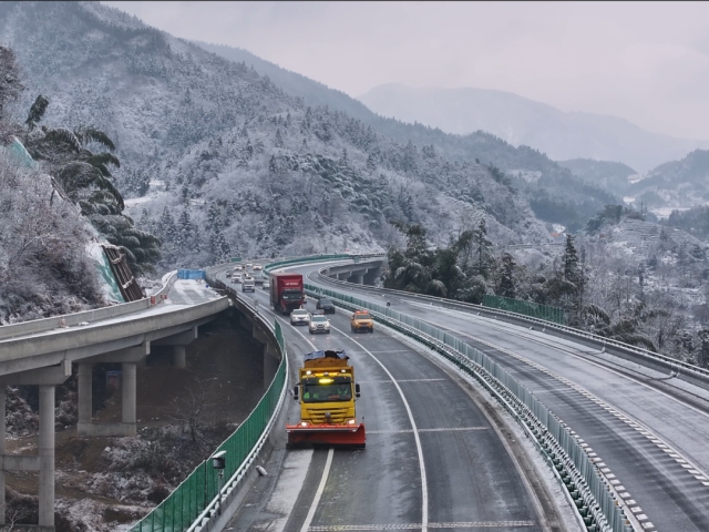 相關(guān)路段營運單位第一時間啟動除雪保通應(yīng)急預(yù)案,與高速交警、路政等部門協(xié)同駐防路面重點部位,及時做好車輛疏導(dǎo)、交通管控、救援和事故處置等工作,盡最大努力降低雨雪天氣給道路通行帶來的影響。受寒潮天氣影響較重的山區(qū)路段迅速調(diào)配應(yīng)急人員、除雪設(shè)備及物資,針對山區(qū)路段的長大橋梁、隧道出入口、陡坡彎道等關(guān)鍵節(jié)點進行重點布控,設(shè)置連續(xù)警示提醒標(biāo)志,采取“小循環(huán)多頻次”模式開展融雪劑撒布作業(yè)。其中,淮河特大橋、桃墅嶺隧道等易結(jié)冰路段還首次啟用除雪融冰噴淋系統(tǒng),防止橋面夜間上凍結(jié)冰。