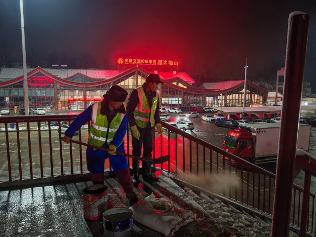 受寒潮天氣影響,1月25日夜至26日凌晨,我省沿淮淮北地區(qū)、大別山區(qū)和皖南山區(qū)溫度驟降,出現(xiàn)雨雪疊加天氣。集團相關(guān)單位迅速響應(yīng),連夜開展融冰除雪工作,奮力護航人民群眾春節(jié)回家路。截至1月26日上午9時,集團相關(guān)營運單位共計出動人員600余人次,機械設(shè)備280余臺班,撒布融雪劑600余噸。集團所轄路段路面無積雪,車輛有序通行。
